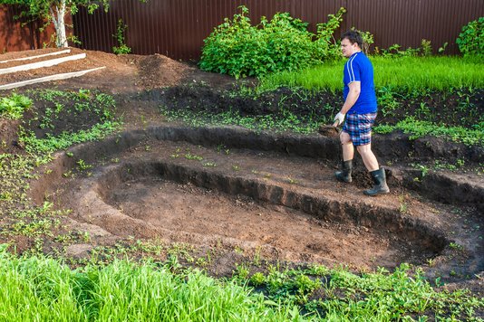 - Teichumrisse markieren und Erde ausheben